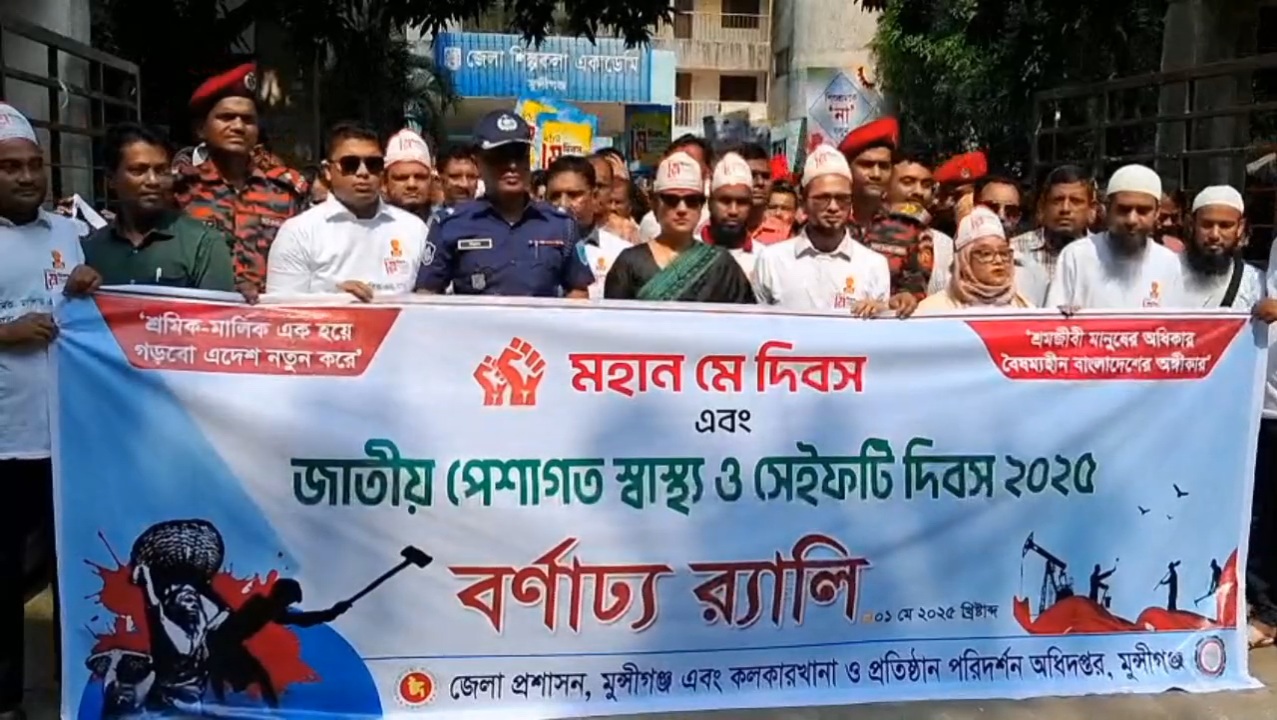 সারাদেশের ন্যায় মুন্সিগঞ্জেও উদযাপন করা হয়েছে মহান মে দিবস এবং জাতীয় পেশাগত স্বাস্থ্য ও সেইফটি দিবস।