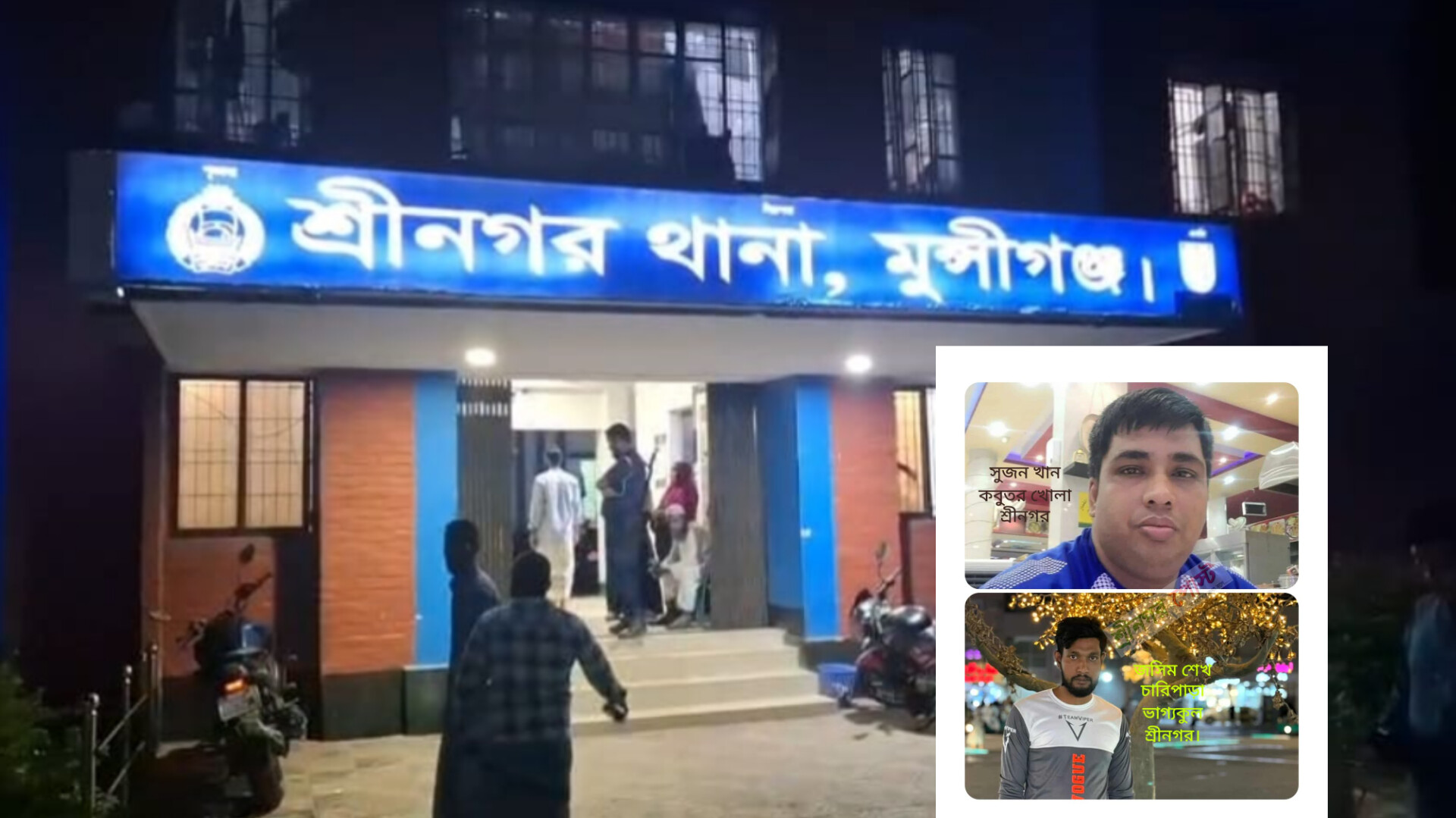 শ্রীনগর থানার অফিসার ইনচার্জ (ওসি) শাকিল আহমেদ বলেন,“ভুক্তভোগী দুইজন লিখিত অভিযোগ করেছেন। আসামীদের গ্রেফতারের চেষ্টা অব্যাহত রয়েছে।