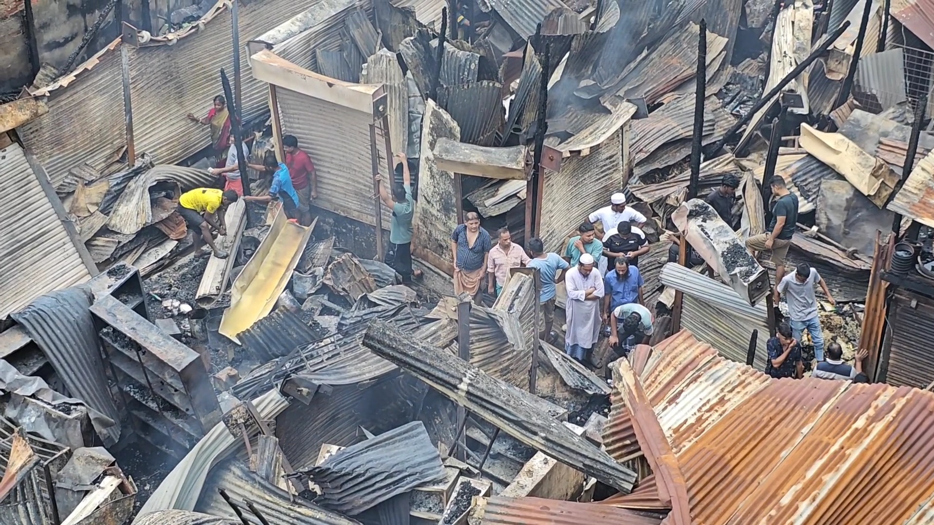 এরপর ফায়ার সার্ভিসের প্রায় চারটি ইউনিটের সাড়ে পাঁচ ঘণ্টার চেষ্টায়,সকাল ৭টার দিকে পুরোপুরি নিয়ন্ত্রনে আসে আগুন। এর আগেই সম্পূর্ণ করে ছাই হয়ে গেছে, বিভিন্ন ব্যবসা প্রতিষ্ঠান সহ সেসব দোকানের ভেতরে থাকা সকল মালামাল।
