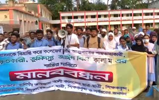 মুন্সিগঞ্জে কলেজের গেইট নির্মাণে বাঁধা,প্রতিবাদে শিক্ষার্থীদের মানববন্ধন